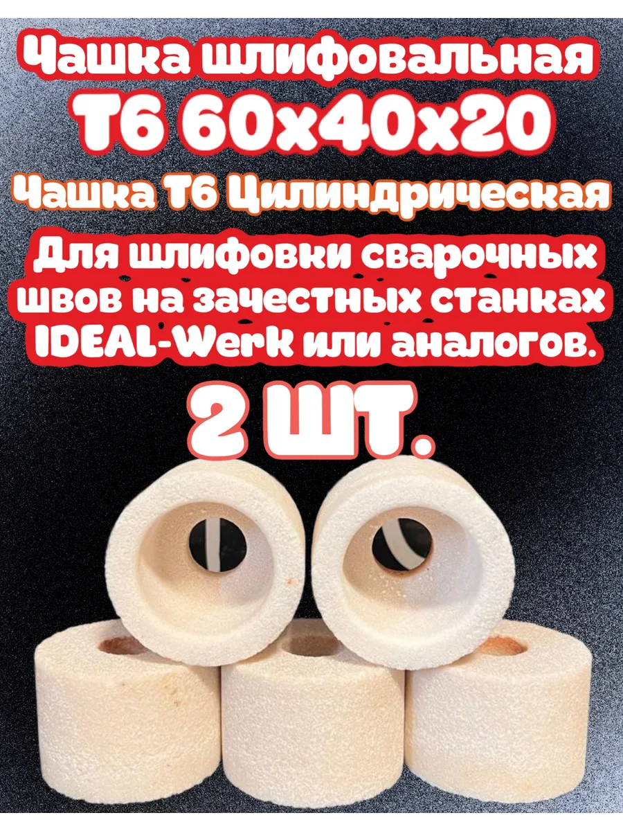Чашка шлифовальная T6 для шлифовки сварочных швов, с размерами 60х40х20. Белый корунд 99ВА зерно Р46. Используется на станках IDEAL-Werk и их аналоги. Чашки предназначены именно для шлифовки сварочных швов. Отлично подходят для шлифовки пил от 6мм до 50мм ширины пильный ленты. Толщина чашки 10мм и 10мм основание.