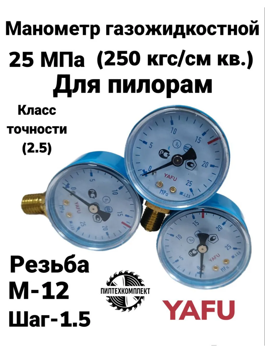 Манометр 25 МПа предназначен для измерения давления. Характеристики: Вес 0.075кг Класс защиты IP40 Размеры 50/70/28 мм Рабочий газ-кислород Входное соединение M12x1.5 Рабочее давление 250 кгс/см2 Класс точности 2.5