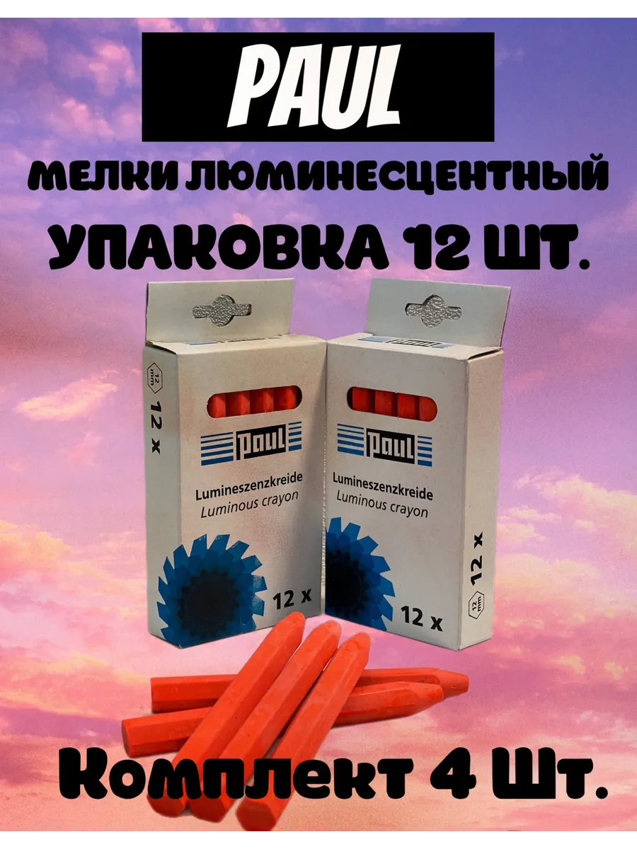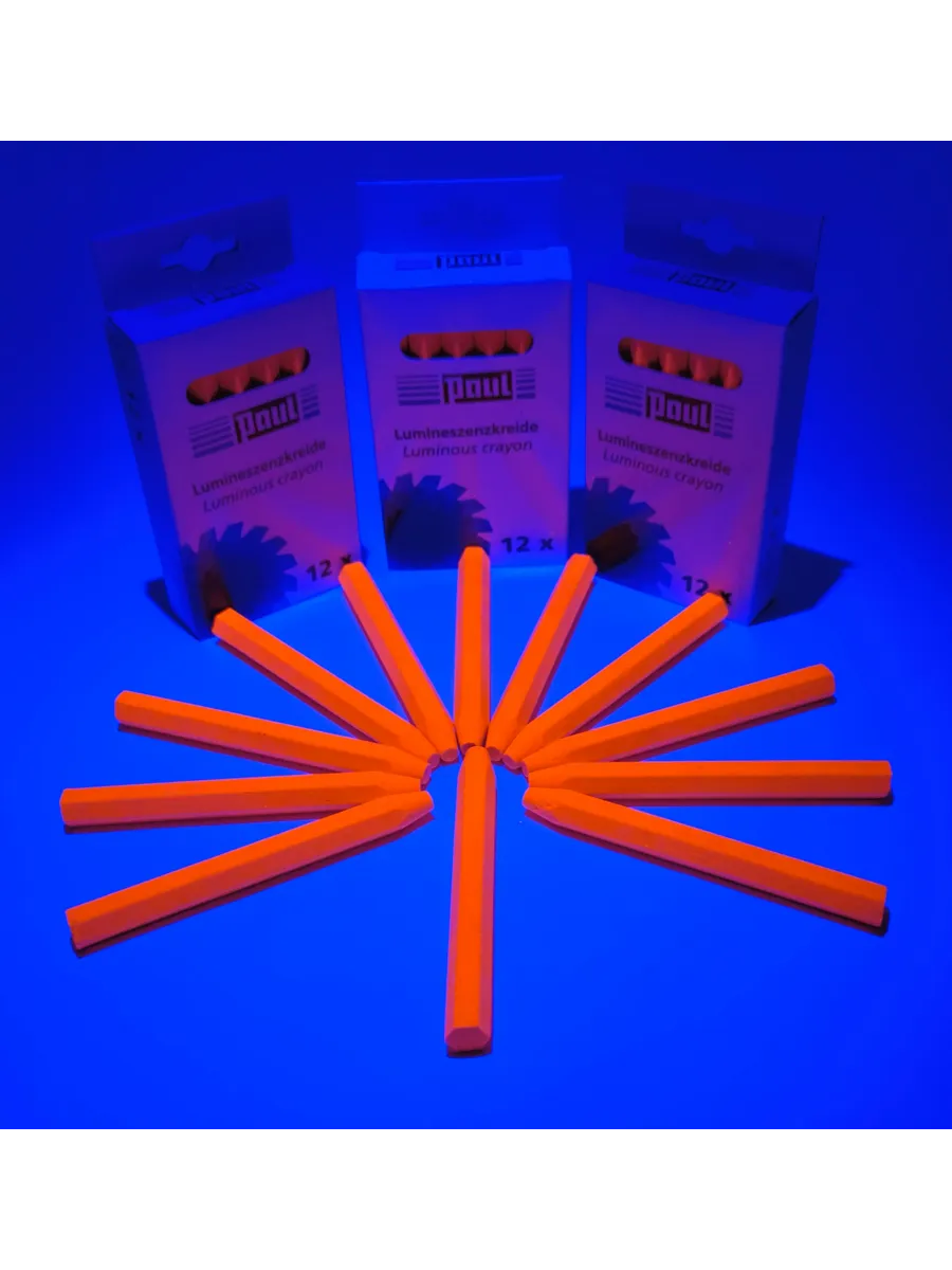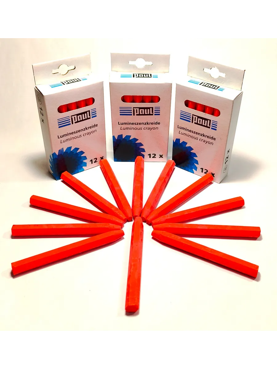 Мелки восковые с натуральным воском производство Германия Paul с добавлением светоотражающих элементов красного, кислотно-оранжевого цвета.