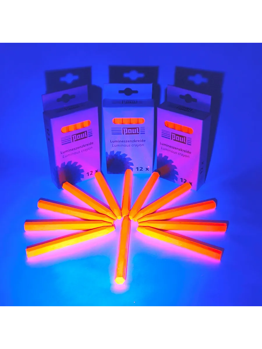 Мелки восковые с натуральным воском производство Германия Paul с добавлением светоотражающих элементов красного, кислотно-оранжевого цвета.