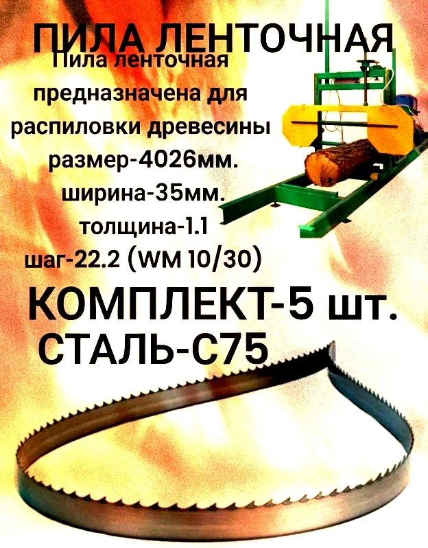 Пила ленточная, сталь С75 35x1.1x4268 мм, предназначена для ленточных пилорам, для распиловки древесины. Пила имеет профиль зуба WM 10/30. Пила сварена в кольцо, готова к использованию.