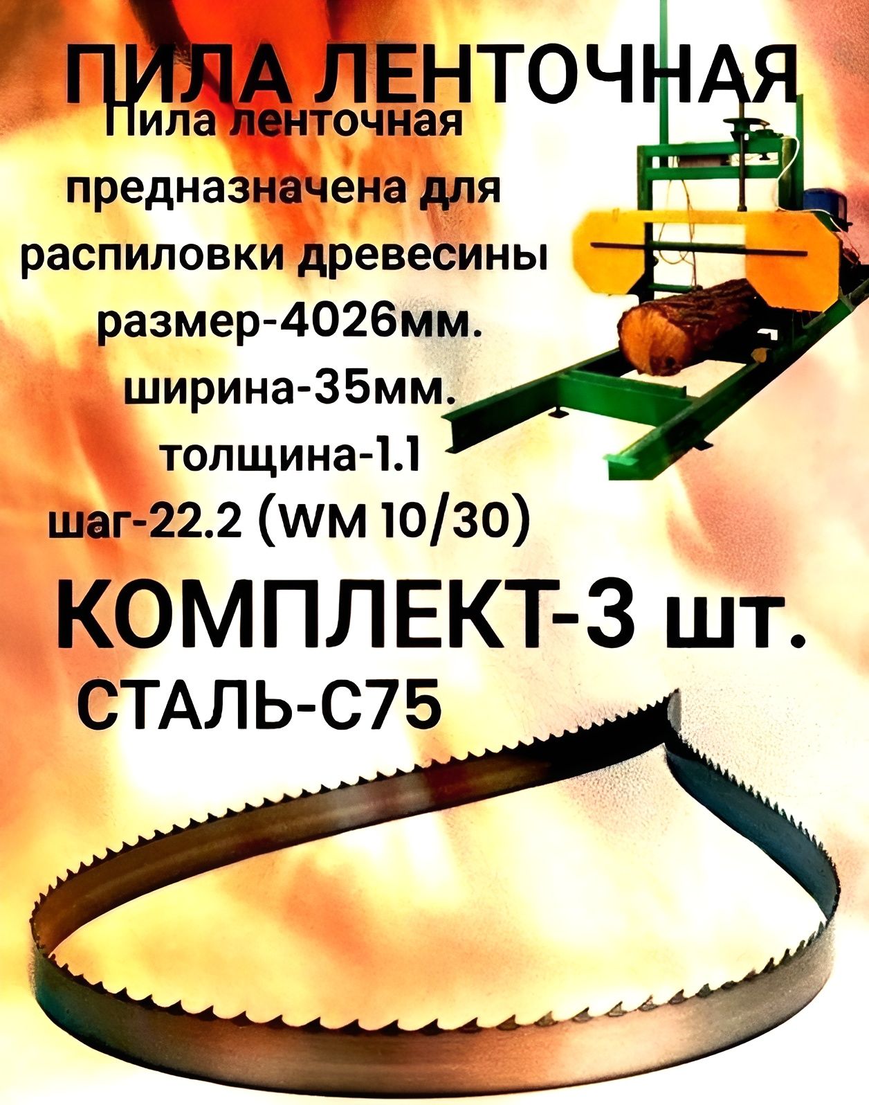 Пила ленточная, сталь С75 35x1.1x4026 мм, предназначена для ленточных пилорам, для распиловки древесины. Пила имеет профиль зуба WM 10/30. Пила сварена в кольцо, готова к использованию.