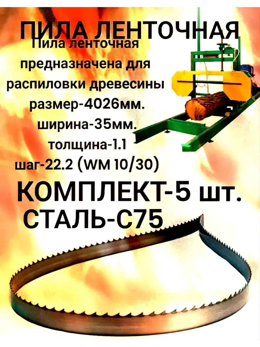 Пила ленточная, сталь С75 35x1.1x4026 мм, предназначена для ленточных пилорам, для распиловки древесины. Пила имеет профиль зуба WM 10/30. Пила сварена в кольцо, готова к использованию.